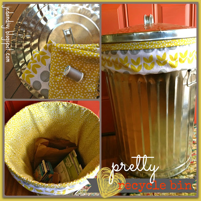 A few months ago our trash service decided they weren't going to pick up trash twice a week anymore. Instead, they were going to pick it up on Sundays, but then on alternating Wednesdays they were going to pick up Recycling and Green Waste. The recycling bin they provided for us was kind of far from our house, since there are a couple homes on our property that share the trash service. So what happened next was that piles of recyclables were ending up in our kitchen, next to the indoor trash can, and on our deck, before they were taken over to the main recycle bin. Something had to be done!! Of course, I made something...