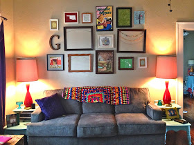 When I asked him to give me a few words to describe their home style (btw- they both participate equally in the decorating), he called it a "doing-what-we-can-with-what-we-got" style. He then brainstormed the following descriptive words: