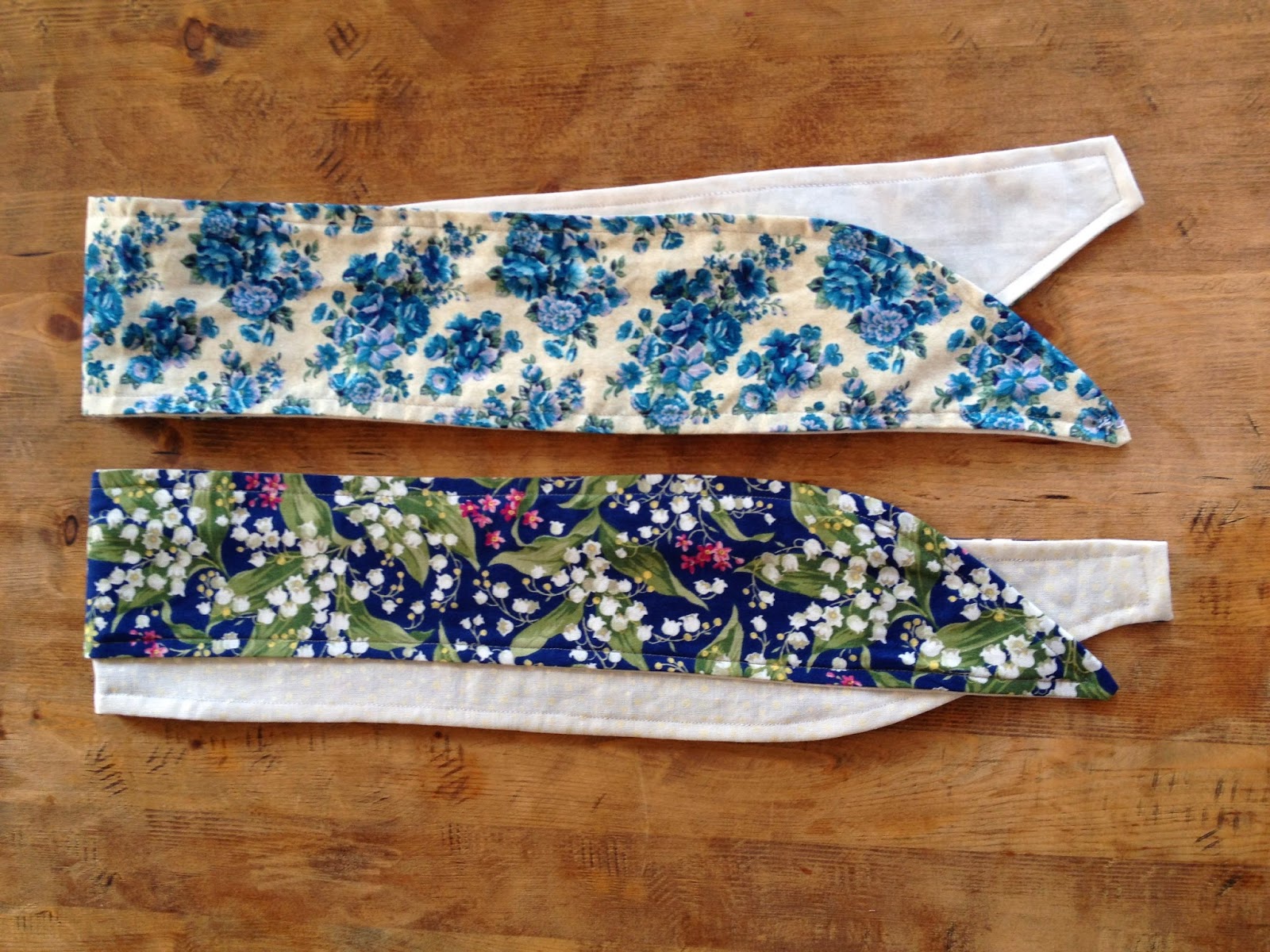 I had complete creative liberty, so it was fun to go come up with 50 different combinations of fabric! That's right, no two head bands/wraps were made alike. Different fabric combos, different thread colors, everything. Here's what 50 head bands/wraps look like: